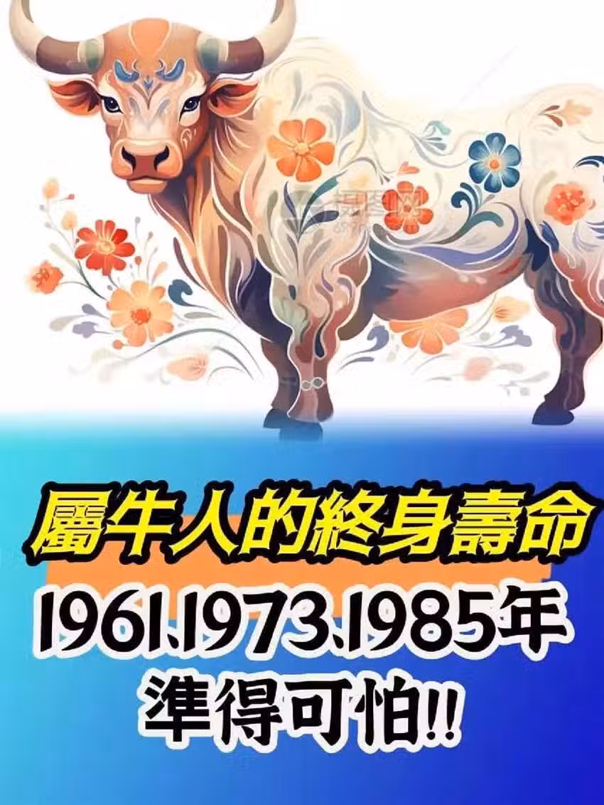 屬牛人的終身壽命: 1961、1973、1985年, 準得可怕~
