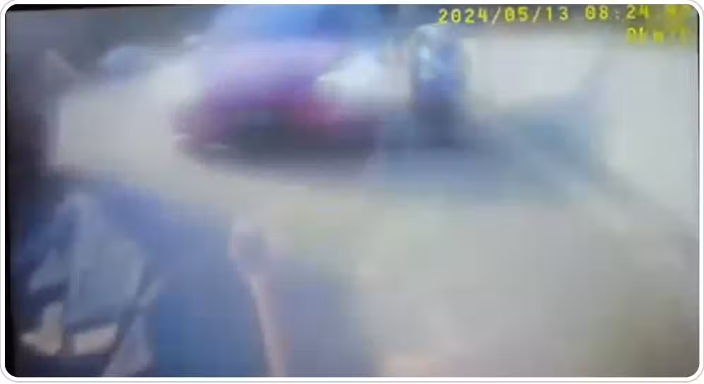 視頻顯示,騎士還沒說上一句,轎車就突然左拐,從側身將摩哆撞倒,由於右側剛好是高架橋墩,騎士猶如「夾心餅」般被車身和牆體夾擊後翻覆,傷勢不明。