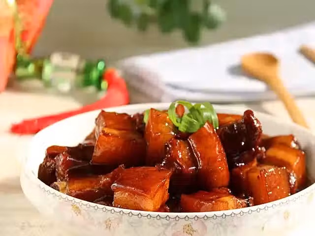 上海紅燒肉,色澤誘人,看似濃油赤醬,其實咸鮮中帶有一絲的甜味,經過小火燜煮之後,酥而不爛,做的到位的紅燒肉,盛入碗中放在桌上,拍一下桌子肉也會抖三抖,不信你可以試試。