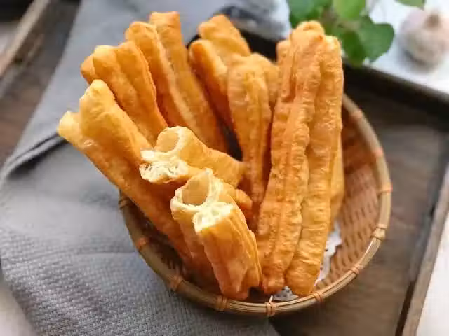 油條是一種傳統的中式面點,據說油條起源於宋朝,在宋朝時期,非常有名的愛國名將岳飛被秦檜迫害致死,老百姓為了發泄憤怒炸制一種類似油條的麵食,叫做油炸檜,從此各個早餐攤上都開始炸制油條,直到現在,油條依然受老百姓的喜愛。