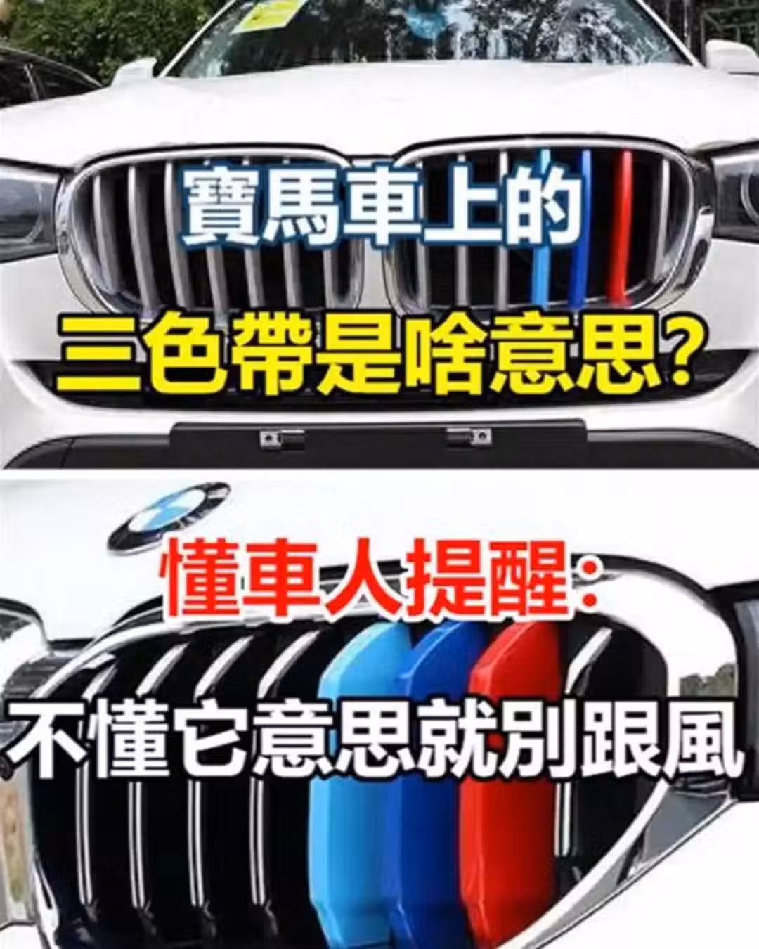 的圖標,要知道在之前只有寶馬車上才有這種圖標。那麼寶馬車上的三色帶是啥意思?懂車人好心提醒:不懂它意思就別跟風。