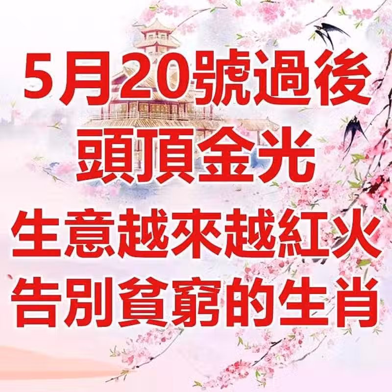 頭頂金光,5月20號過後生意越來越紅火,告別貧窮的生肖