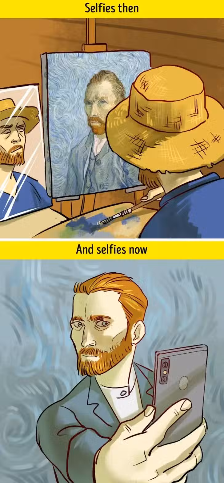 在相機還沒問世的年代,只能透過請畫家畫畫像來保存自己的身影,現在只要拿起手機一拍,就可以留下許多張自拍啦~