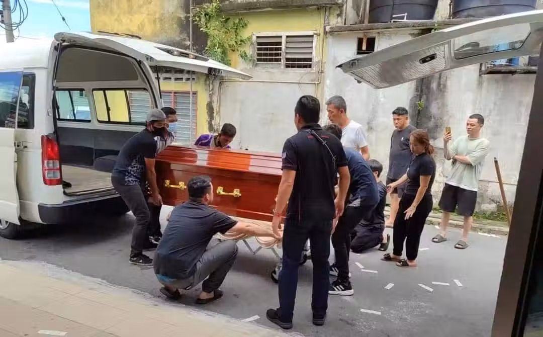 這對情侶今日雙雙從安順醫院被到殯儀館,共用一個靈堂。為了讓這對情侶留下一個美好的婚禮記念,家人們特別為他們倆特製一張結婚照片。