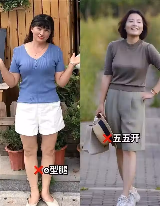 不建議年紀大的女性穿短褲最重要的原因還是因為短褲會暴露腿型,比如OX型腿的女孩子大多數都不太適合穿短褲,太容易讓自己的身材暴露無遺了,同時腿粗的女性穿短褲也會讓腿上的肌肉無處可藏,放大你的身材問題。