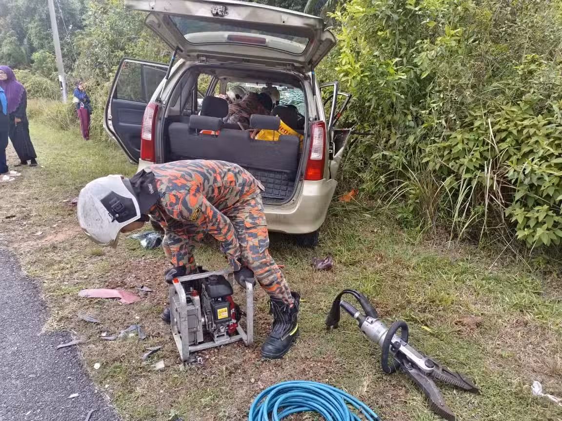 哥打丁宜消拯局於下午約2時55分接獲車禍投報,派出5名消拯員到場施援。