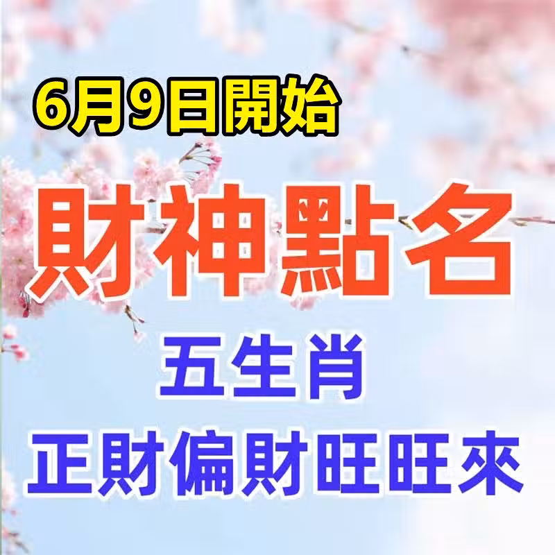6月9日開始財神點名,正財偏財旺旺來的生肖