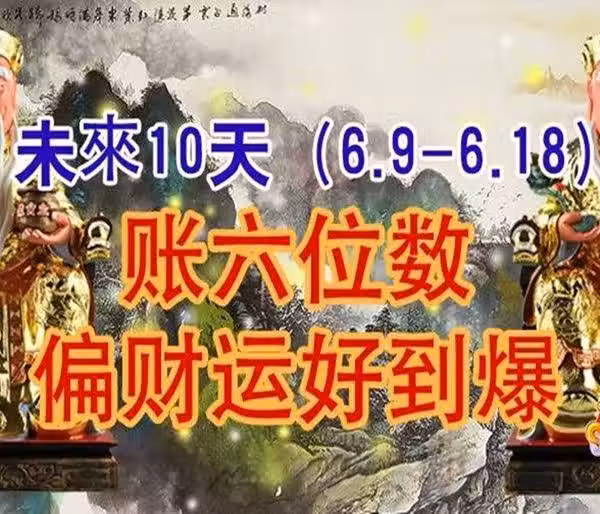 未來10天(6月9號 到 6月18號)賬六位數,偏財運好的生肖