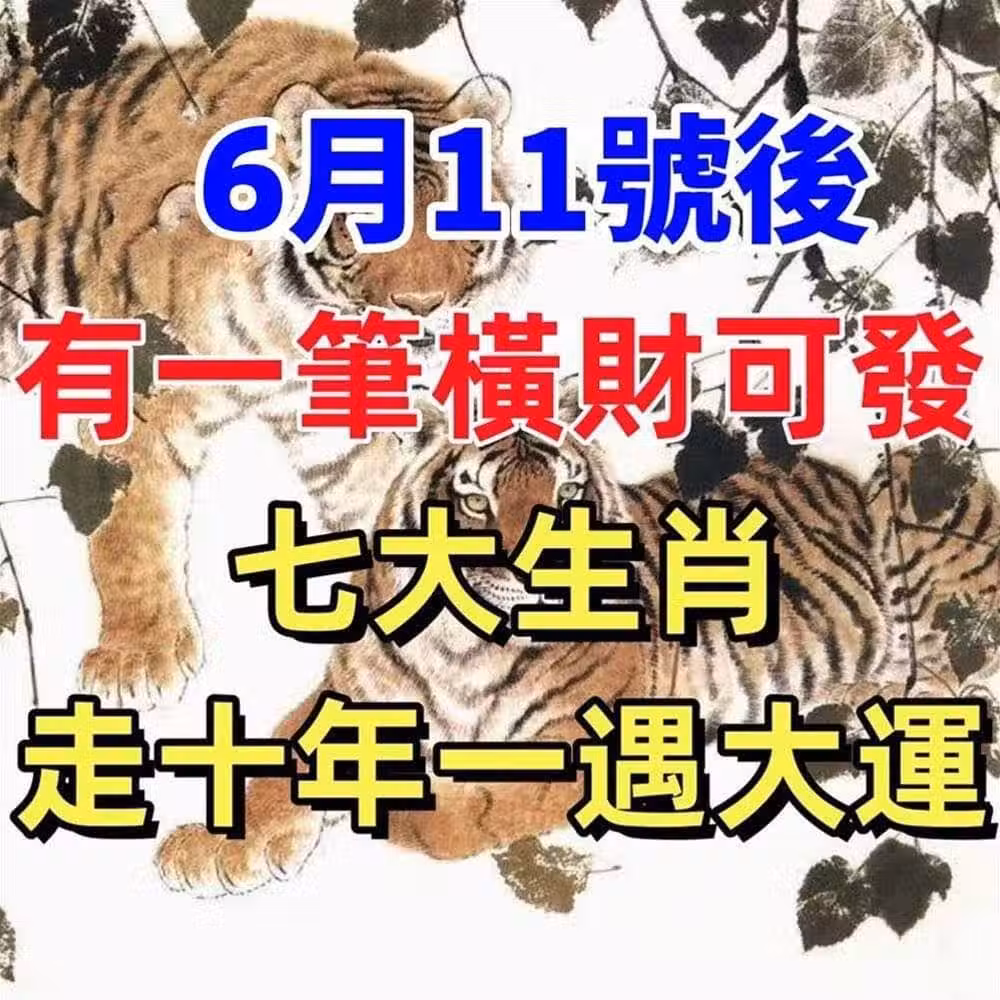 6月11號後有一筆橫財可發,走十年一遇大運的七大生肖