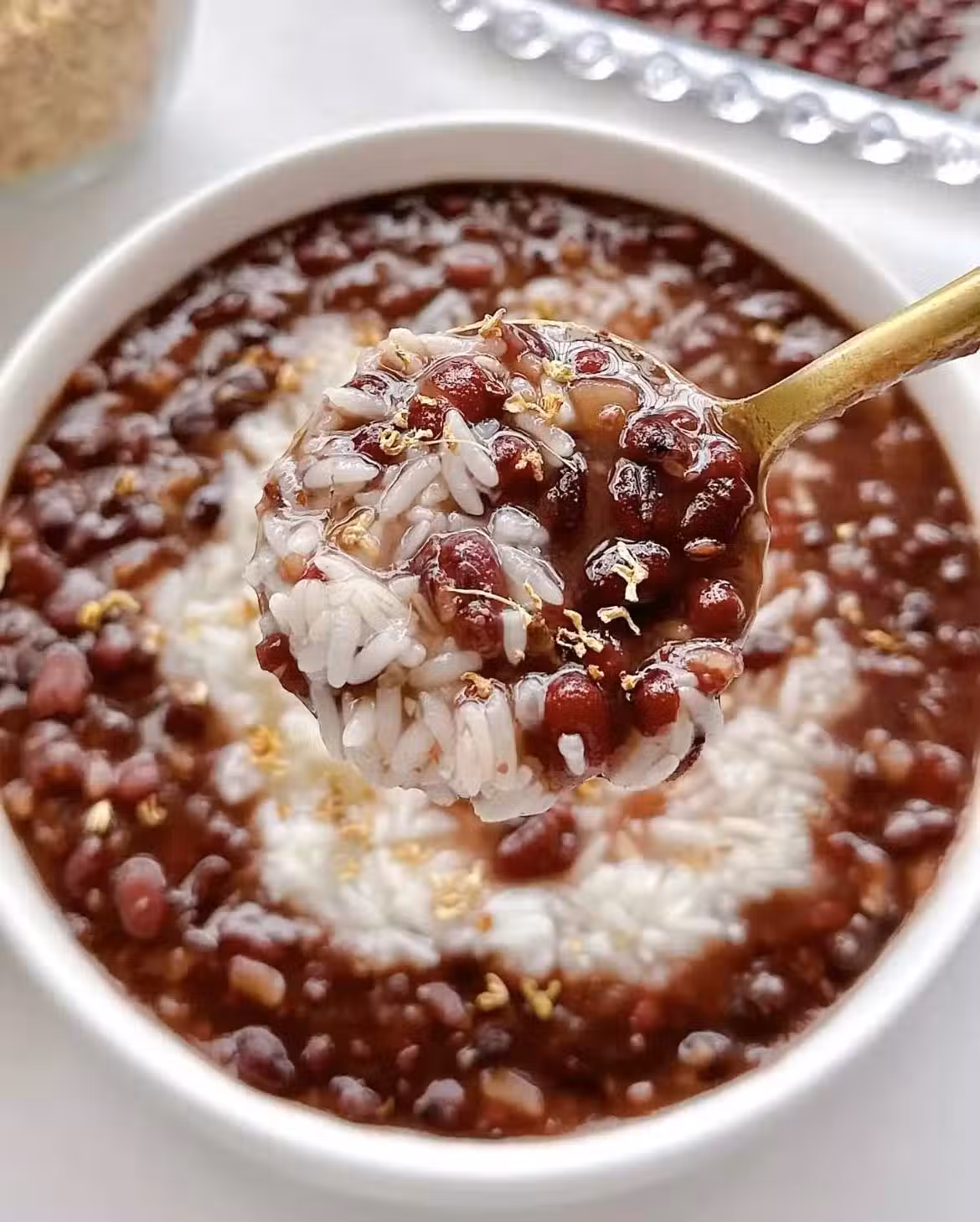 撒上一些桂花或者其他喜歡的裝飾物,增加風味和美觀度。使用勺子輕輕攪拌均勻,讓紅豆沙和酒釀充分混合。現在,一碗美味的紅豆沙酒釀就做好了!可以趁熱享用,也可以放涼後食用,口感都非常棒!