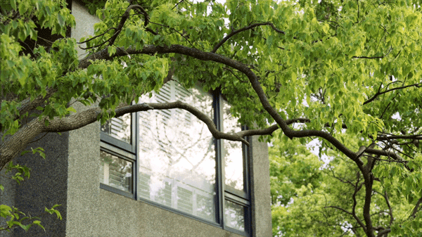 他在每棟住宅屋頂上,都安裝了一個凹槽,用來收集雨水,每一戶的排水溝相互連結,把回收的雨水集中用來噴灑園區綠植。