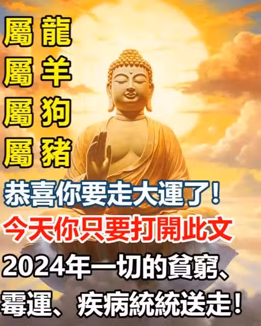 生肖【屬龍 屬羊 屬狗 屬豬】恭喜你要走大運了!今天你只要打開此文,2024年一切的貧窮、霉運、疾病統統送走哦!