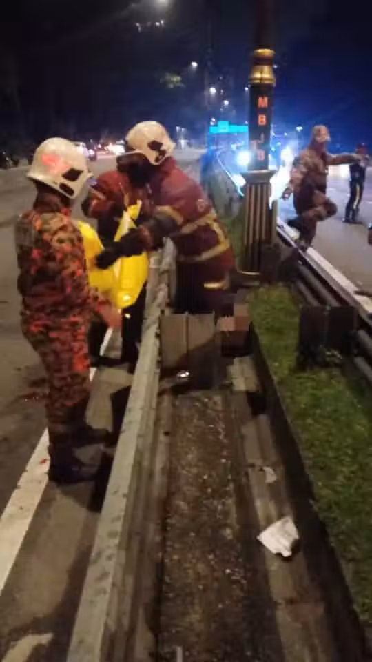 (新山15日訊)一對男女深夜共乘摩哆時與轎車相撞,摩哆之後起大火,燒成如火球般,該男女當場慘死。