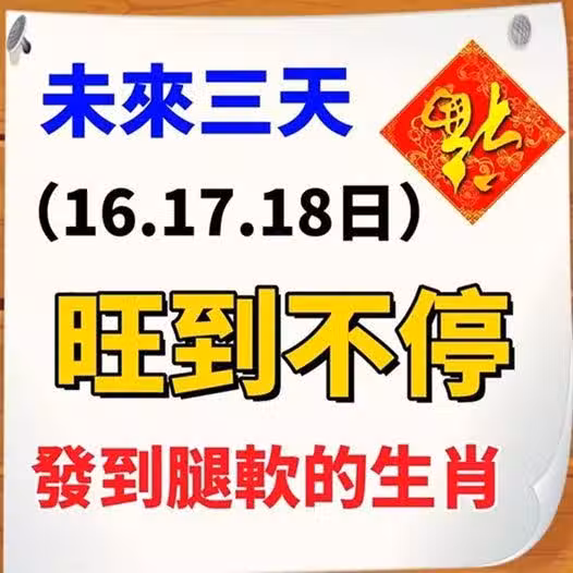 未來三天(11月16.17.18日)旺到不停,發到腿軟的生肖.