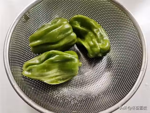 1.把青椒洗凈,瀝凈水分,去掉青椒的果蒂。