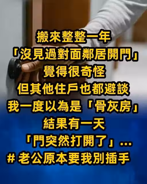 搬來整整一年「沒見過對面鄰居開門」,覺得很奇怪但其他住戶也都避談,我一度以為是「骨灰房」!結果有一天「門突然打開了」… # 老公原本要我別插手