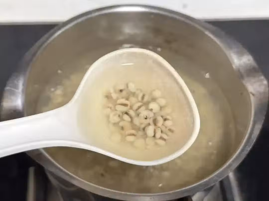 3、當薏仁米煮得差不多時,就可以將切好的冬瓜片放入鍋中了。冬瓜的加入不僅為湯品增添了清新的口感,還能使湯汁更加清爽。煮的過程中要注意火候,不宜過大,以免煮得過爛。大約煮3-5分鐘,冬瓜變得透明,就基本熟透了。