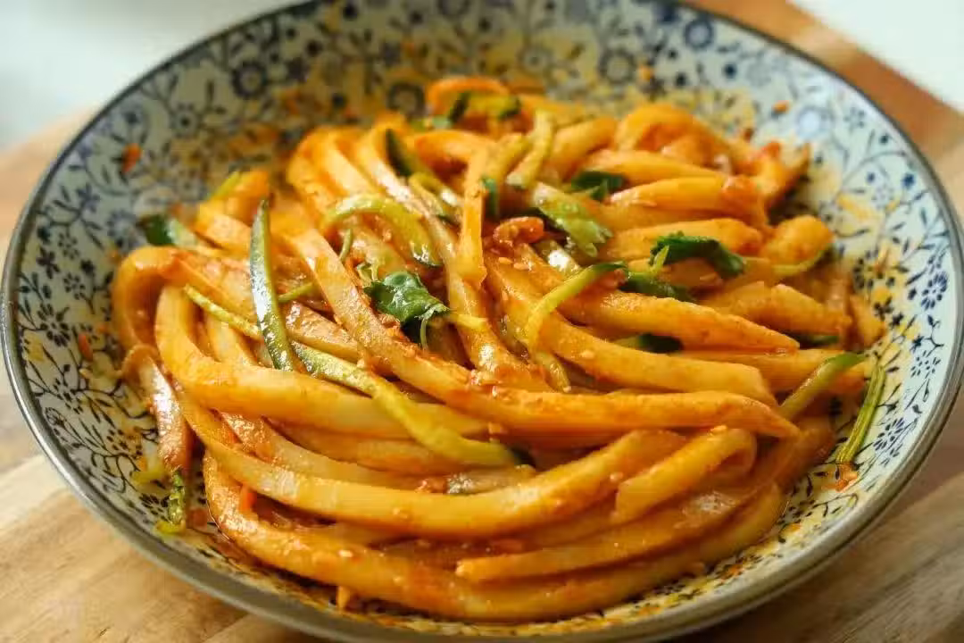 涼拌汁:大蒜2個 白芝麻1勺 辣椒粉1勺 生抽1勺 米醋1勺 鹽1勺 蚝油半勺 芝麻油適量