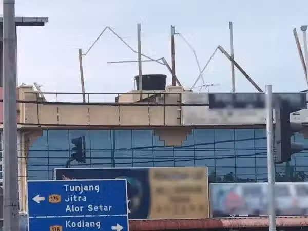 暴風雨侵襲古邦巴素縣,一些店鋪的鋅板被強風颳走。