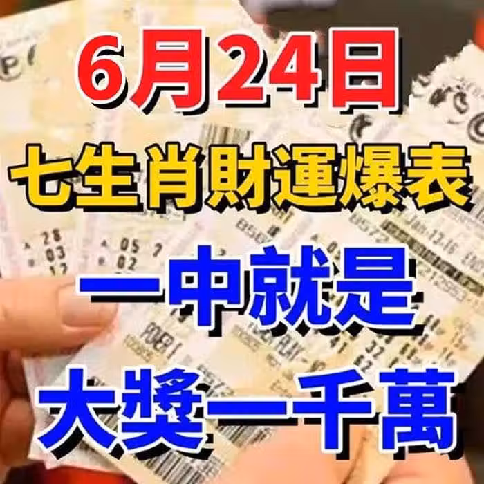 就在6月24號 ,這七大生肖財運爆表,一中就是大獎一千萬,走好運!