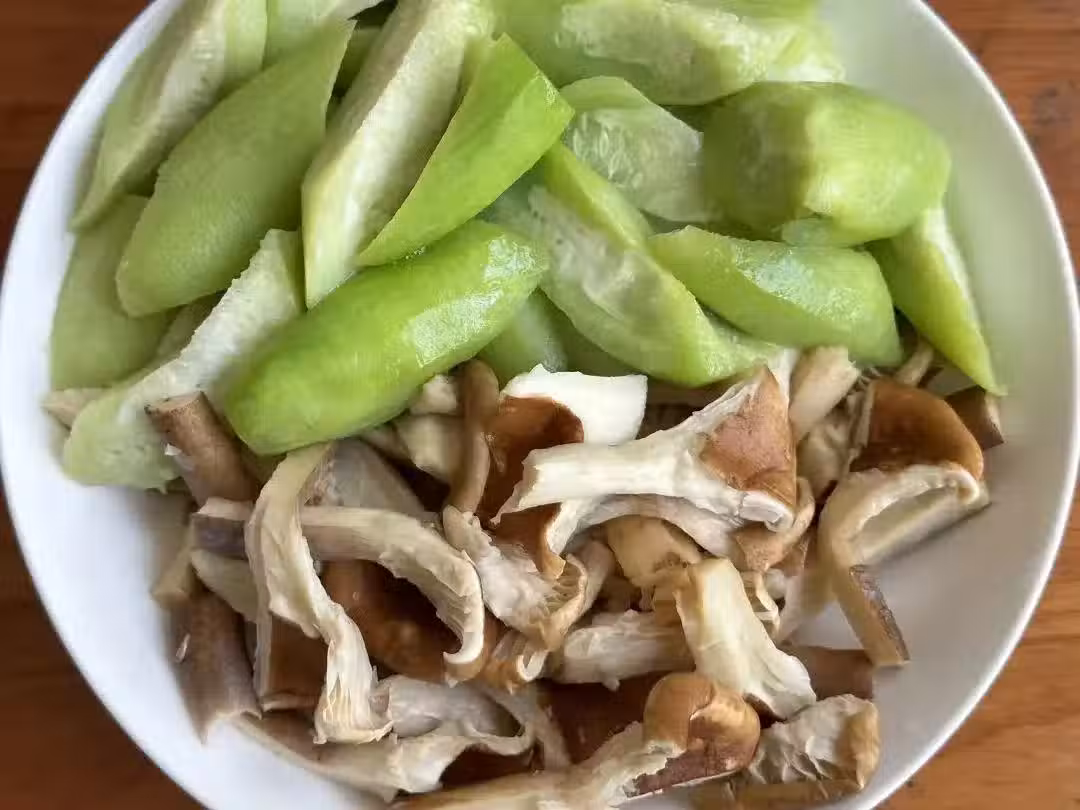 接著將處理好的絲瓜和豬肚菌放入鍋中,大火快速翻炒。這樣不僅可以保持食材的新鮮和口感,還能讓食材更好地吸收調料的味道。