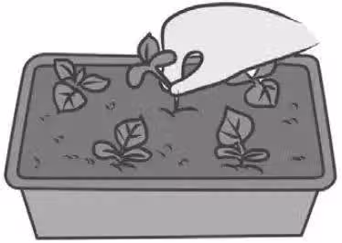 間苗後的小苗根部會松動,所以要在根部適當培土。