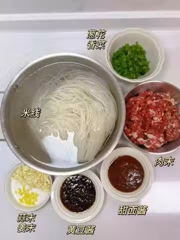 2. 然後,我們開始煮米線。將干米線放入煮沸的水中,根據包裝上的說明煮至熟透後撈出,放入提前準備好的深碗中。