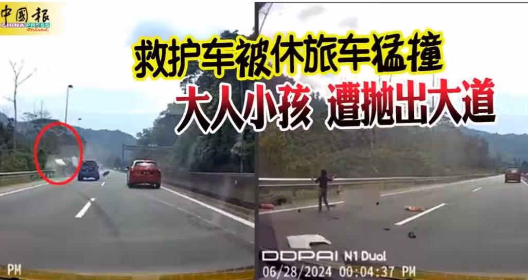 社交媒體流傳一則行車記錄儀視頻顯示,一輛藍色豐田Avanza休旅車在左邊車道行駛,而救護車則在右邊車道,過程中休旅車不斷逼近右邊車道,隨後猛撞救護車。