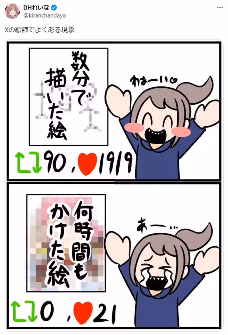 日本同人作家兼歌手「DHれいな」,最近在X聊起了自己玩社群網站多年以來,深刻感受到的一種奇怪現象……