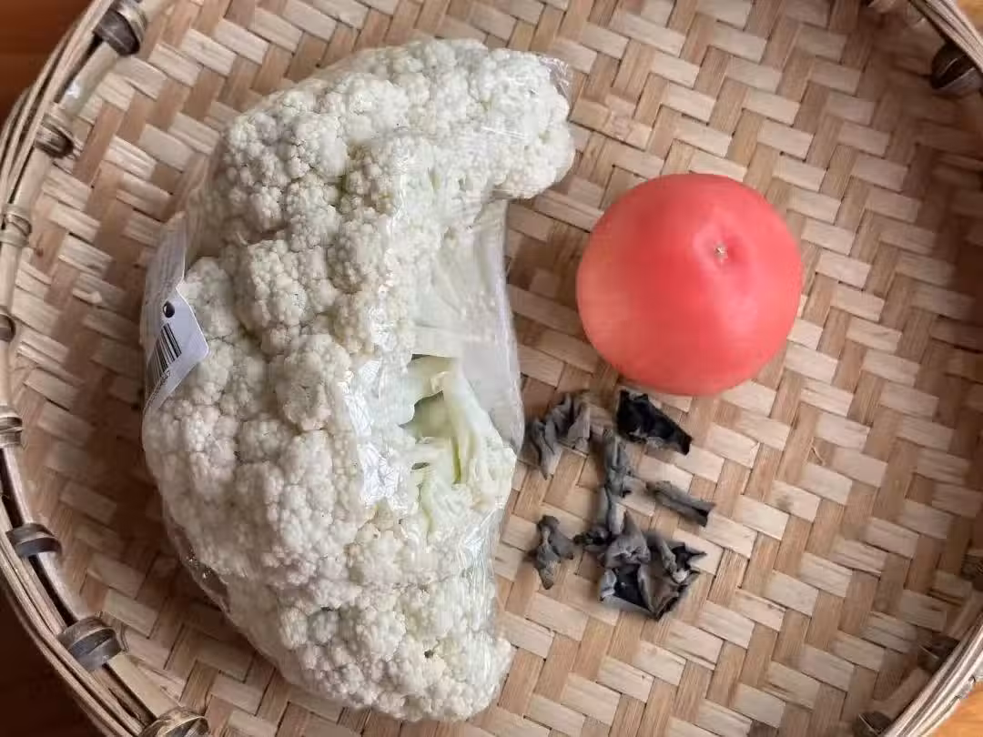 2、將花菜掰成小塊,用清水沖洗乾淨。在沸水中焯水約1分鐘,這樣既能保持花菜的清脆口感,又能去除其生澀的味道。焯好水的花菜撈出瀝干,準備下鍋翻炒。
