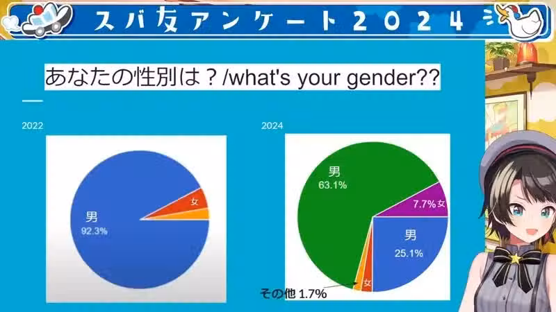 知名 VTuber 團體 hololive 旗下 JP 組二期生 486「大空昴」於2日慶祝出道後第 6 次生日。本次生日直播,486 秀出了 2024 年度鴨友們填寫的問卷調查結果。