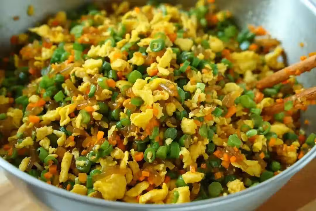 5、將醒好的麵糰取出,輕柔地分成每個約50克的小劑子。取一個小劑子,用擀麵杖擀成中間稍厚、邊緣稍薄的圓形麵皮,這樣做出的餡餅底部不易破裂,邊緣則能更好地封住餡料。接著,舀入滿滿一勺餡料,像包包子一樣將麵皮封口捏緊,確保餡料不會外泄。
