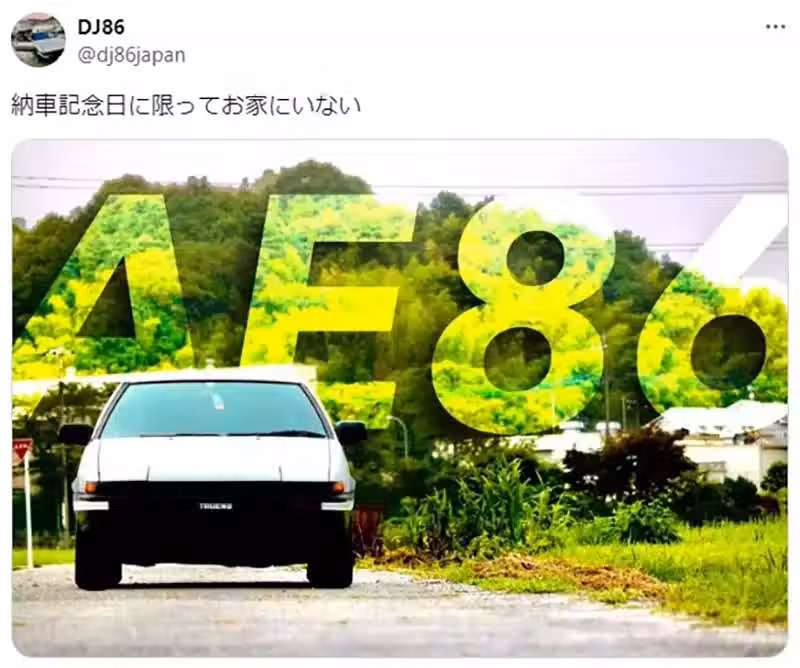 上面這位暱稱「DJ86」的日本X網友,是一位重度的《頭文字D》與TOYOTA AE86粉絲。他總是會開著愛車趴趴走,並且分享愛車跑遍各地的照片。