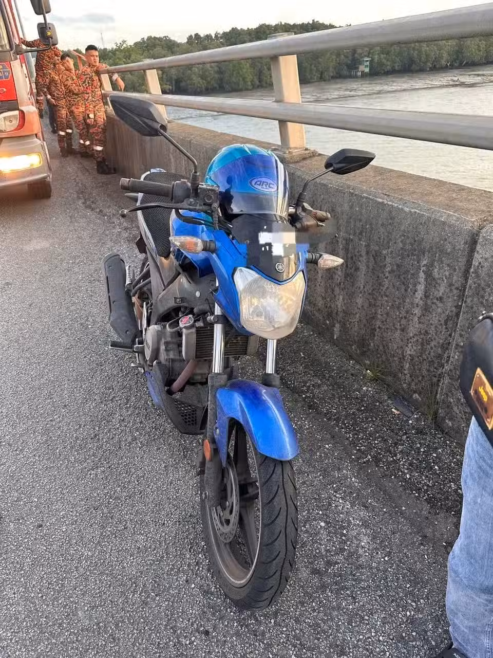 (新山10日訊)一名中年男子今早騎著摩哆來到馬新第二通道大橋上,之後被發現其墜海企圖自殺,目前生死未卜。