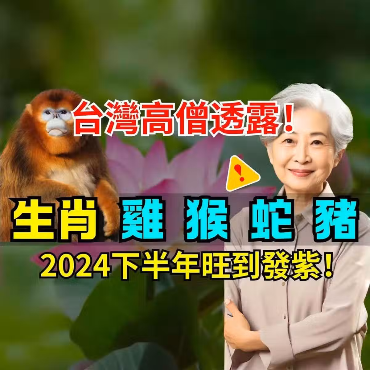 生肖雞,猴,蛇,豬,台灣高僧透露!2024下半年旺到發紫!
