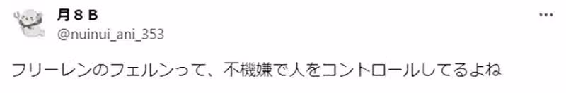 「我看到有人說費倫有『用負面情緒控制他人』的傾向,我現實也絕對不想跟這種人住在一起,不過奶大又可以彌補所有缺陷啦。」