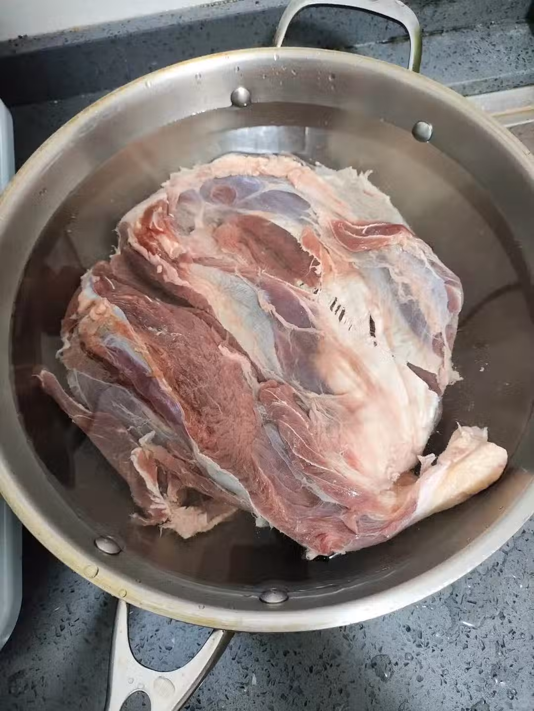經過腌制的牛肉,已經初步具備了誘人的風味,但還需經過「泡水」這一步,才能徹底去除血水和雜質,還原牛肉的本色,為後續的滷製打下完美基礎。