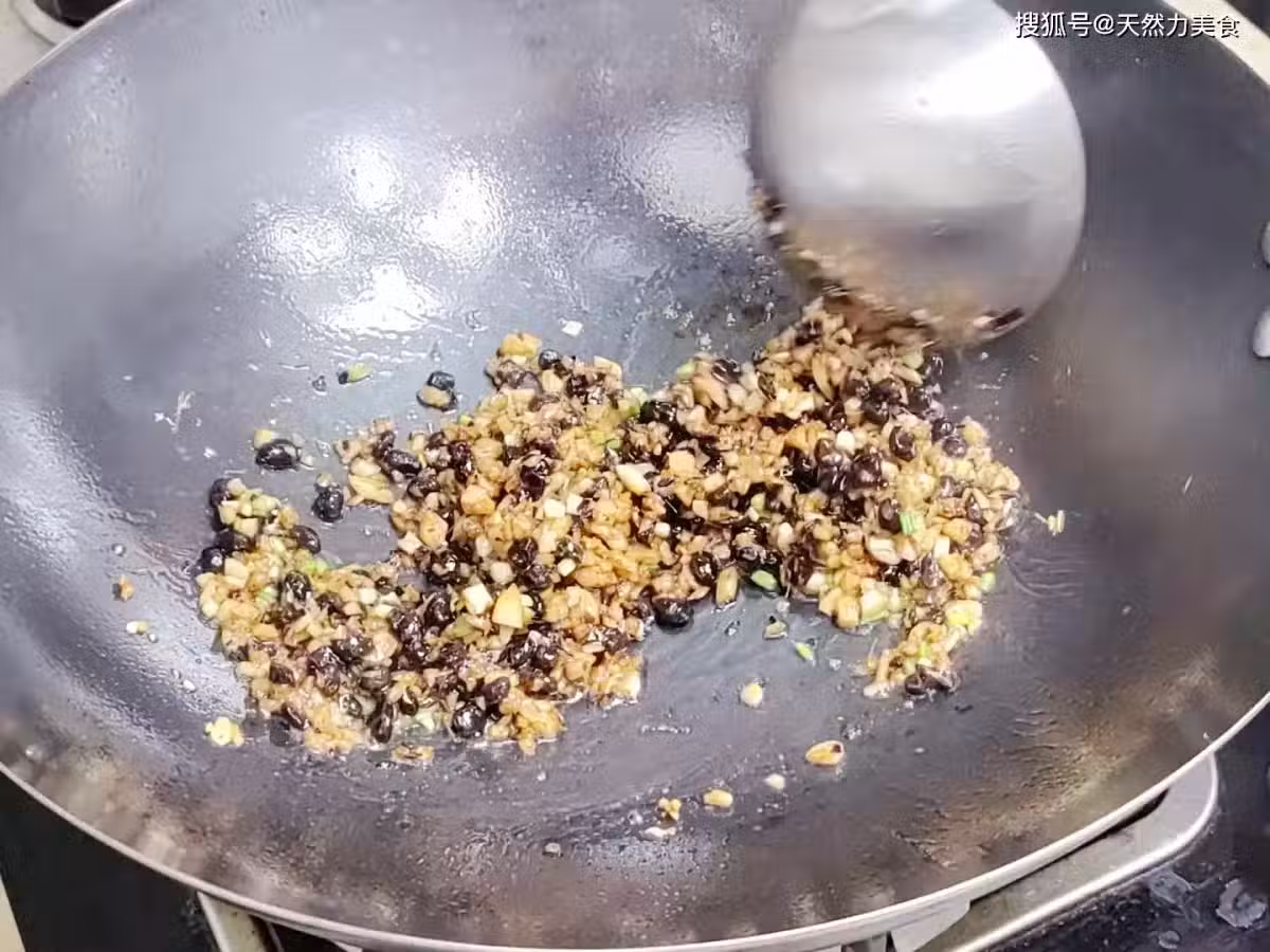5、把炒好的豆豉醬打進腌制好的五花肉里,我們在打豆豉醬的時候儘量把油瀝出來,這樣油少也就不會那麼膩,把豆豉醬和五花肉攪拌均勻。