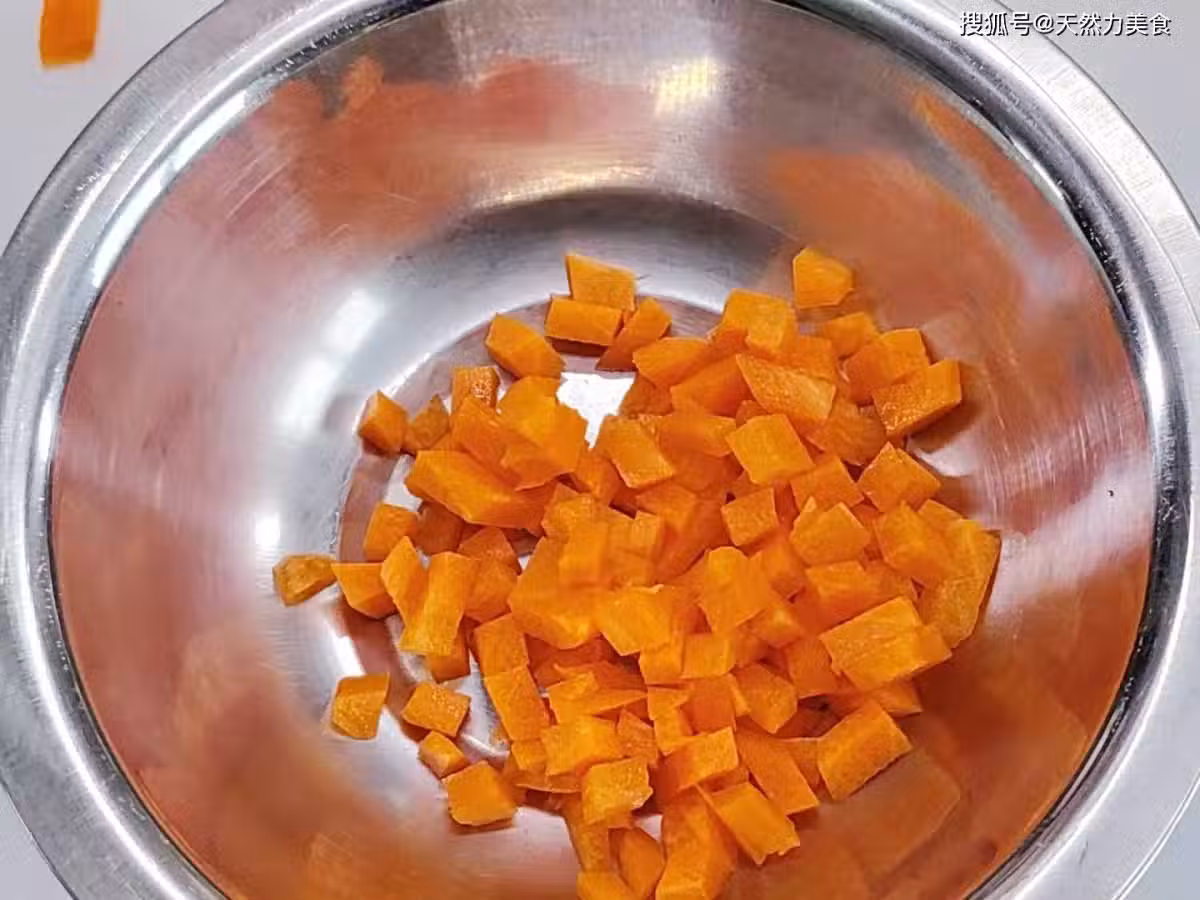3、豆腐雞蛋羹肯定少不了豆腐,而這個豆腐沒有特定的規定,當然用內酯豆腐、嫩豆腐或者玉子豆腐(日本豆腐)是最好的,因為這幾種豆腐的口感是最嫩的。我這次用的是玉子豆腐。用刀在日本豆腐中間切開後把豆腐倒出,接著先切成0.5厘米厚的片,再切成0.5厘米寬的條,最後切成0.5厘米大小的丁備用。