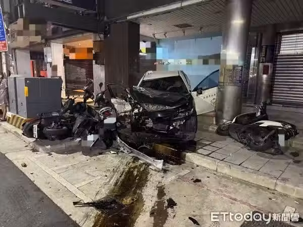 據《ETtoday》報導,今天凌晨1點半左右,厚德派出所21歲周姓員警跟黃姓員警,開著巡邏車沿著正義北路,往龍門路的方向行駛,然而中途在停等紅燈的時候,一輛奔馳車突然高速逆向衝來,將警車撞飛到騎樓上,還波及到另一輛多元計程車,當下慘況怵目驚心。