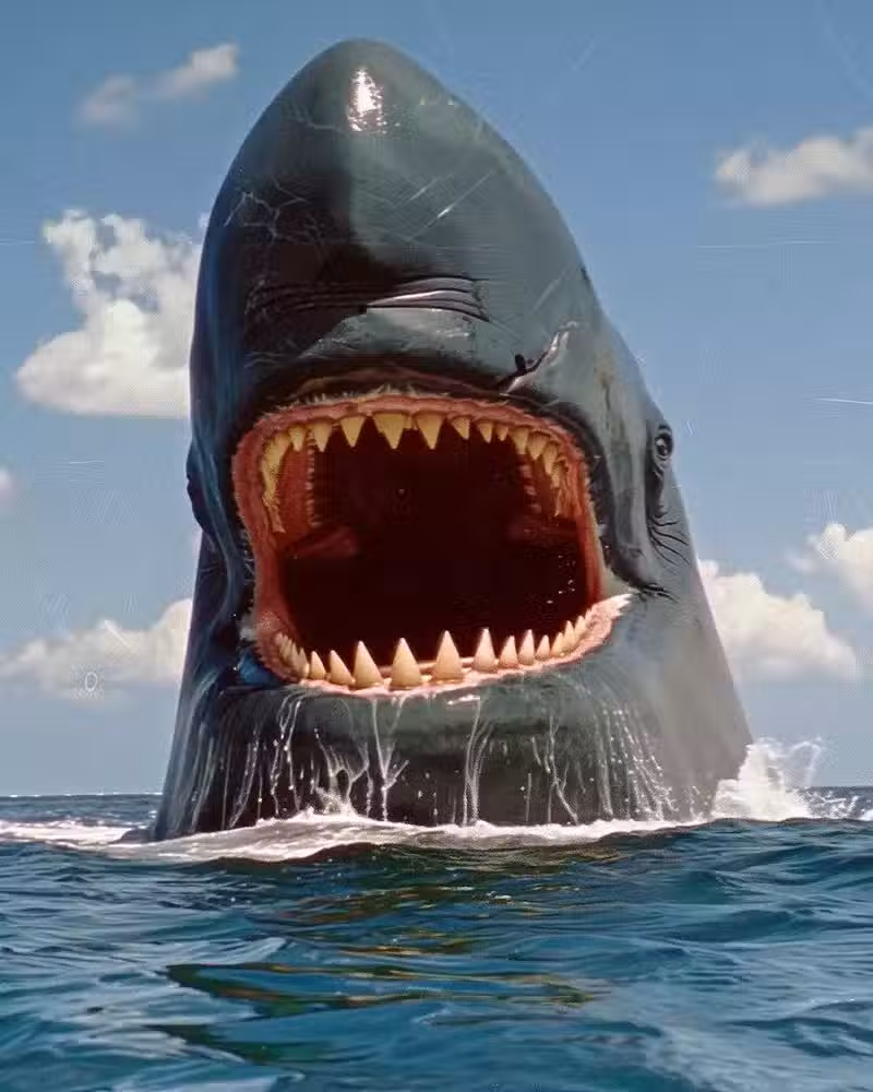 既然是1975年的好萊塢電影風格作品,那麼以目前AI的技術跟大數據搜集能力,的確可以把畫面弄得很復古,其中這個大章魚我看了半天,應該就是海王類了吧(我不確定),不過如果是那個時候的電影,估計應該會用黏土模型,然後用停格動畫的方式去做呈現吧?
