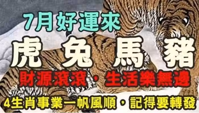 7月好運來,四大生肖事業一帆風順,財源滾滾,生活樂無邊