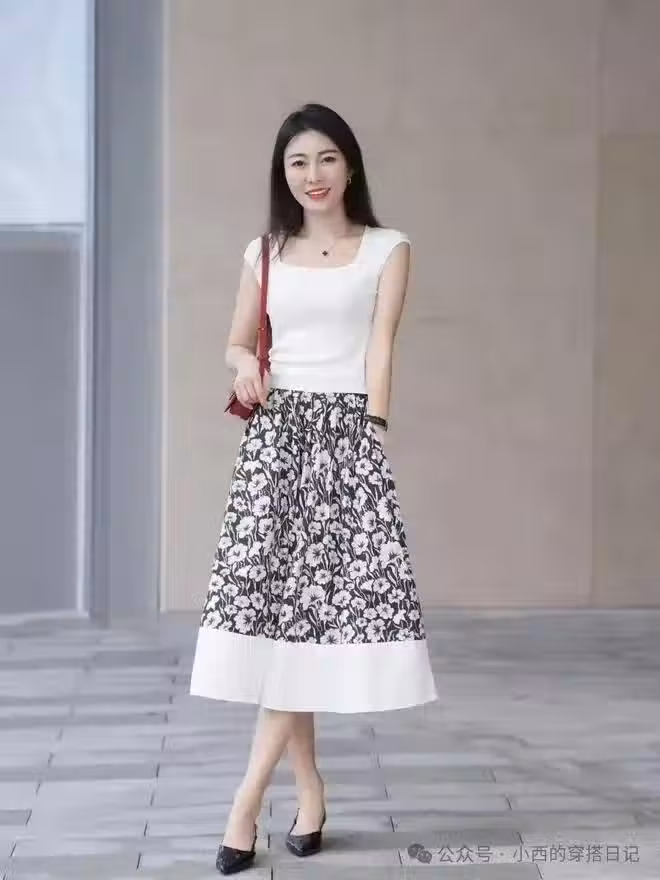 在溫暖的陽光下,白色長裙與藏藍色馬甲的搭配彰顯出清新而自然的風格。細節處的鈕扣增添了一份精緻感,而手中的編織包帶來了夏日的輕鬆氣息。柔和的光線透過樹葉,灑在裙擺上,仿佛為這一幕平添了一抹詩意。▼