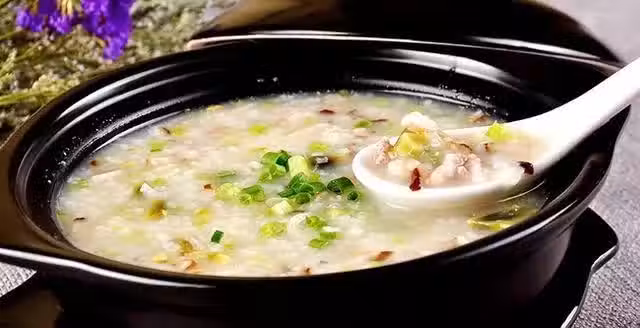 5.最後,將剩下的一半皮蛋倒入,繼續煮10分鐘即可,喝前調入剩餘的鹽和香蔥碎。