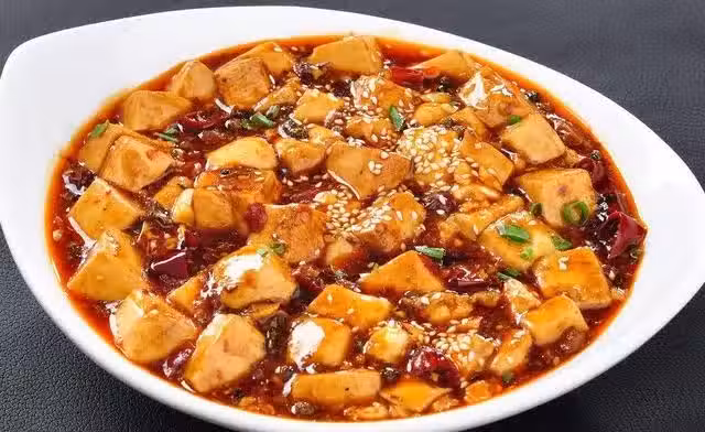 材料:石膏豆腐2個四方塊,香辣油3勺(約60g),郫縣豆瓣醬1勺(約12g),豆豉1勺,蒜瓣1瓣,姜一小塊,辣椒麵10g,大骨高湯75g,老抽2g,鹽,調味粉,蒜粉,花椒麵適量,小蔥1撮,香菜1撮,濕澱粉40g