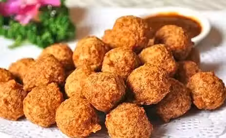 8、鍋中倒油,把擠好的丸子一個一個沿成鍋邊下入鍋中炸;在丸子稍成形,用漏勺推動,讓其都均勻受熱,顏色也更均勻,顏色金黃撈出控油裝盤即可。