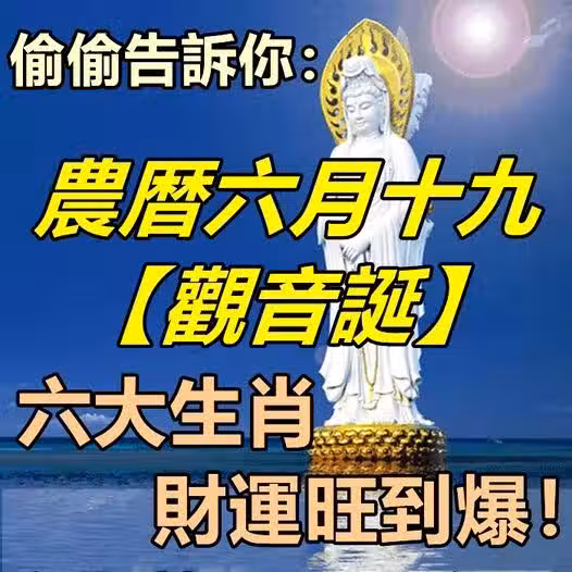 偷偷告訴你:六大生肖,農暦六月十九日【觀音誕】財運旺到爆!