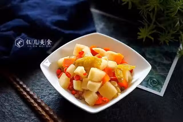 1、將白蘿蔔和胡蘿蔔都洗乾淨並切成小方塊,小米辣切碎備用。