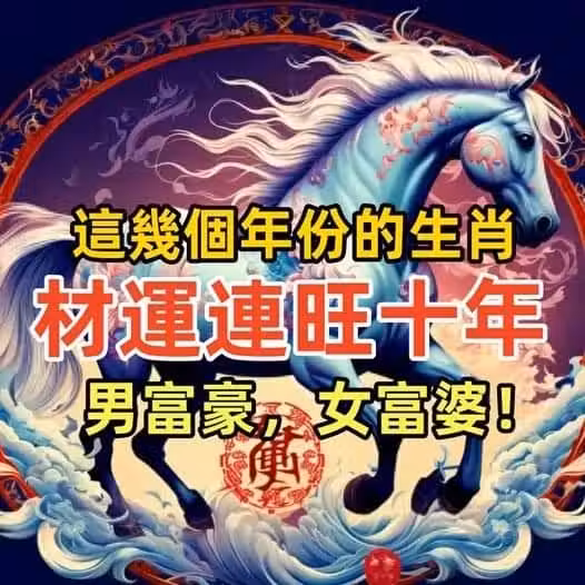 這幾個年份的生肖,材運連旺十年,男富豪,女富婆!