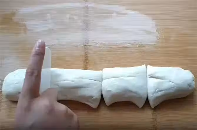 3.隨後我們在案板上抹少許的油,把醒好的面直接搓成長條,不要揉,揉起筋的話延展性不好,下四個面劑。